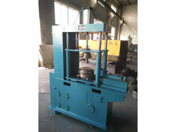 鋼瓶封頭縮口機采用封頭自轉(zhuǎn),氣動定位夾緊,縮口滾刀擠壓成型,控制凸輪旋轉(zhuǎn)一周,成型一只封頭。調(diào)整滾刀拖板的行程,可改變縮口直徑大小。該機與輸送線聯(lián)動,可實行自動化操作。